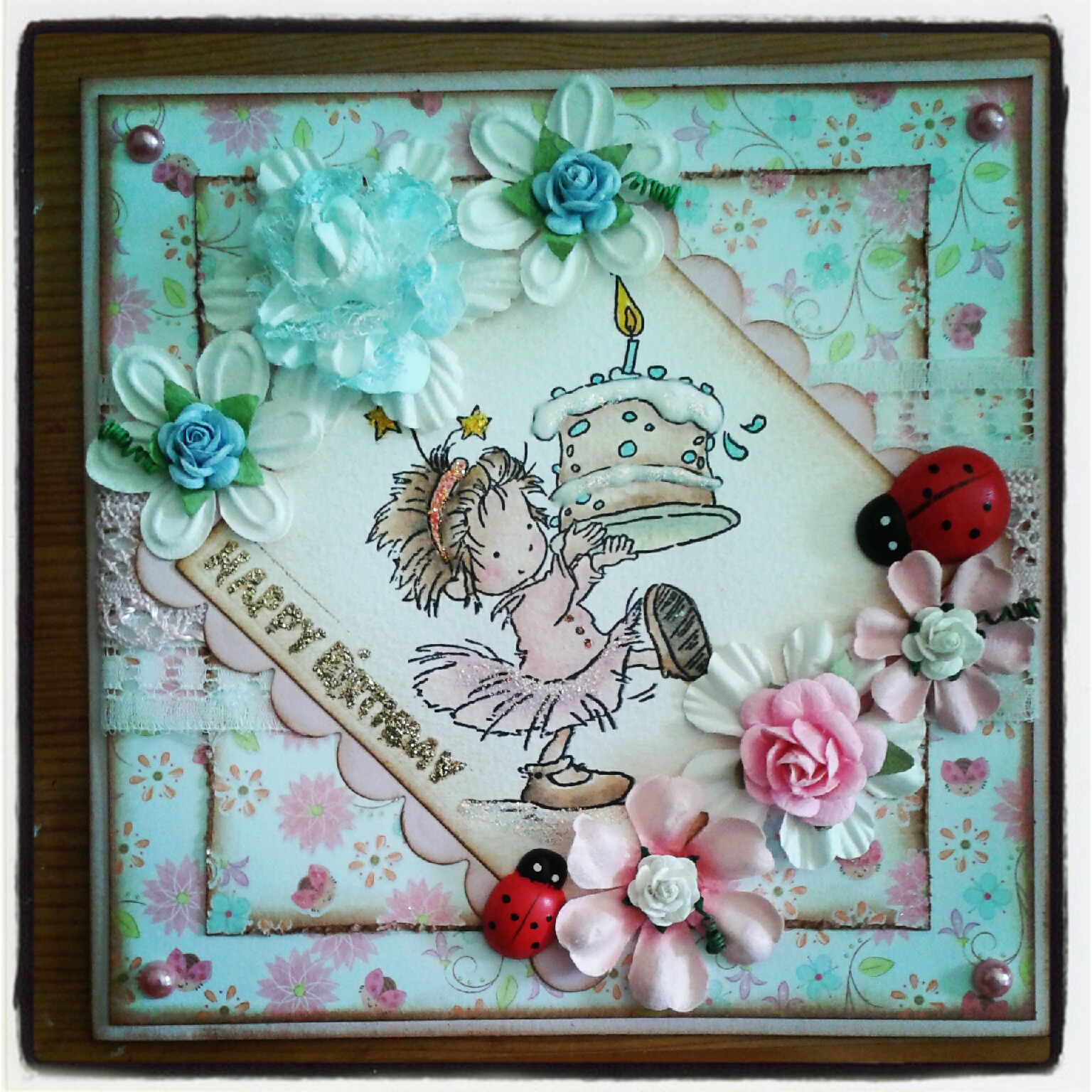 Sonstiges: Halbperlen v. Kaisercraft, Blumen v. Prima, Stickles, Spellbinders, Holzmarienkäfer