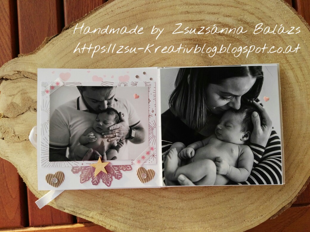 Und nun zum heutigen Beitrag. Nachdem ja meine Eltern keine besonderen Wünsche hatten und sie sich sowieso alles kaufen können, habe ich mir überlegt was ich ihnen schenken könnte. Und sie ja im November Oma und Opa geworden sind, habe ich mir gedacht, ich bastel ihnen ein Album mit den Fotos von der kleinen Enkelin Szofia. Und Profifotos hatte ich ja auch schon.