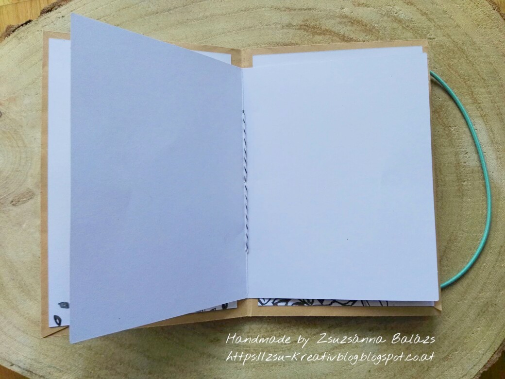 Das Innenleben besteht auch aus braunen Versandtaschen und Kartenrohlingen aus dem aktuellen Sale-A-Bration Katalog 2018. Und damit es nicht so fad ist, habe ich dawischen noch eine gestreifte GeschenktĂĽte als Seite verwendet. Die Seiten habe ich dann mit dem schwarz-weiĂź gestreiften Kordel von Stampin‘ Up! angenäht und mit dem Accessoir „BlĂĽtenfantasie“ aus dem FrĂĽhjahr-/Sommerkatalog 2018 verziehrt. Die Seiten habe ich mit den Karten-Sortiment Erinnerungen & mehr – BlĂĽtenfantasie gestalten bzw. die leeren Seite mit dem Set „BlĂĽtentraum“ bestempelt.