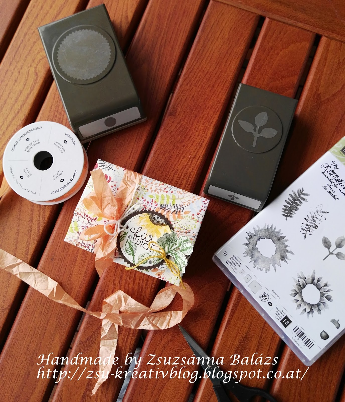 Für den Anhanger habe das neue Produktpaket „Herbstanfang“ und den dazu passenden Handstanzer „Blätterzweig“ verwendet. Dieses Produktpaket ist mein absoluter Favorit, denn Sonnenblumen sind meine Lieblingsblumen 😀
