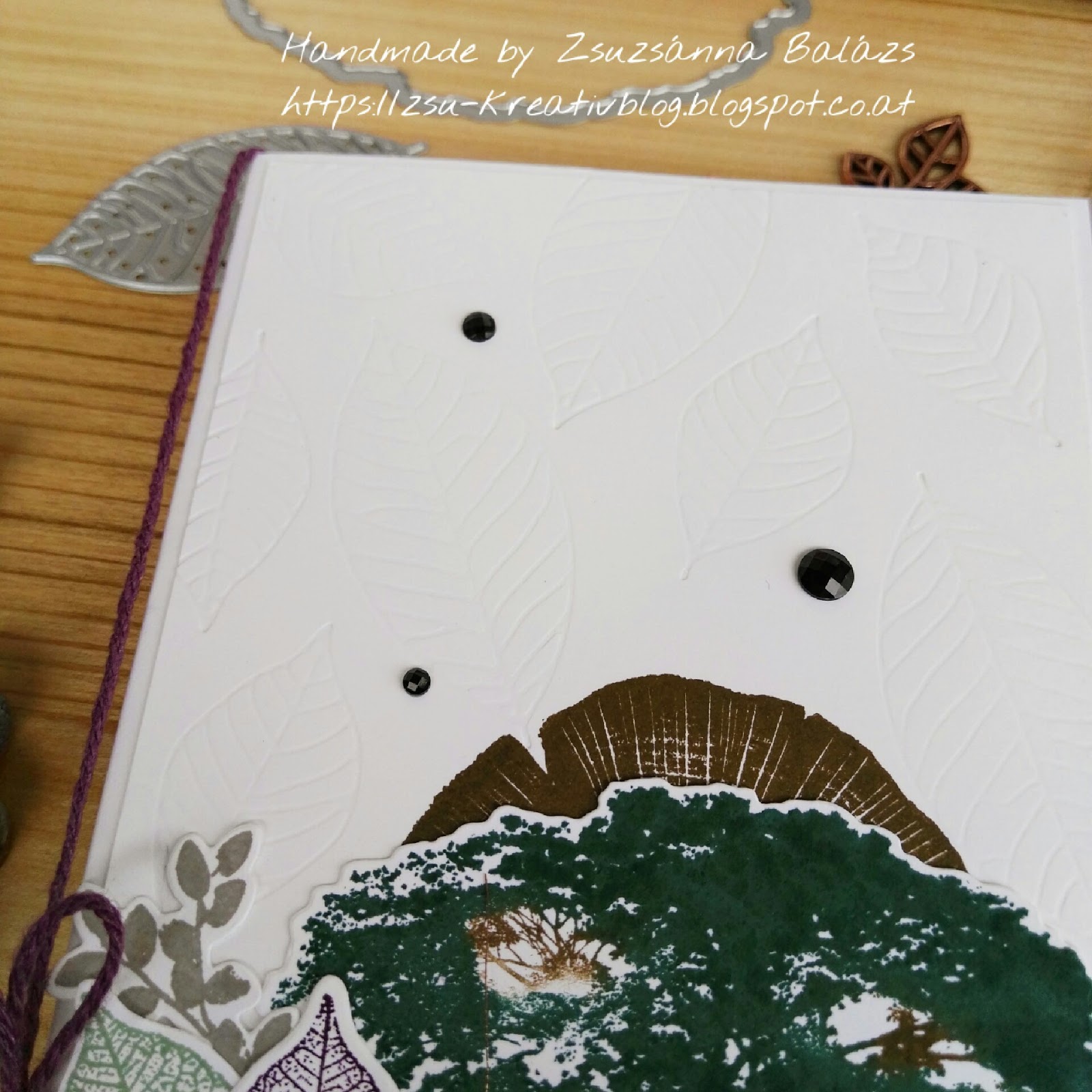 Den Hintergrund der Karte habe ich mit den Blättern zum Prägen geprägt. Ich hoffen, mann kann es am Foto einigermaßen erkennen.