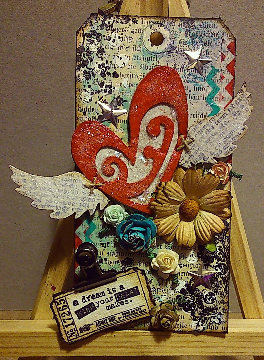 Mein erster Tag für heuer ist fertig 😀 Verwendet dafür hab ich meinen absoluten Lieblings-Tim Holtz Stanzer, das Herz mit den Flügeln 🙂