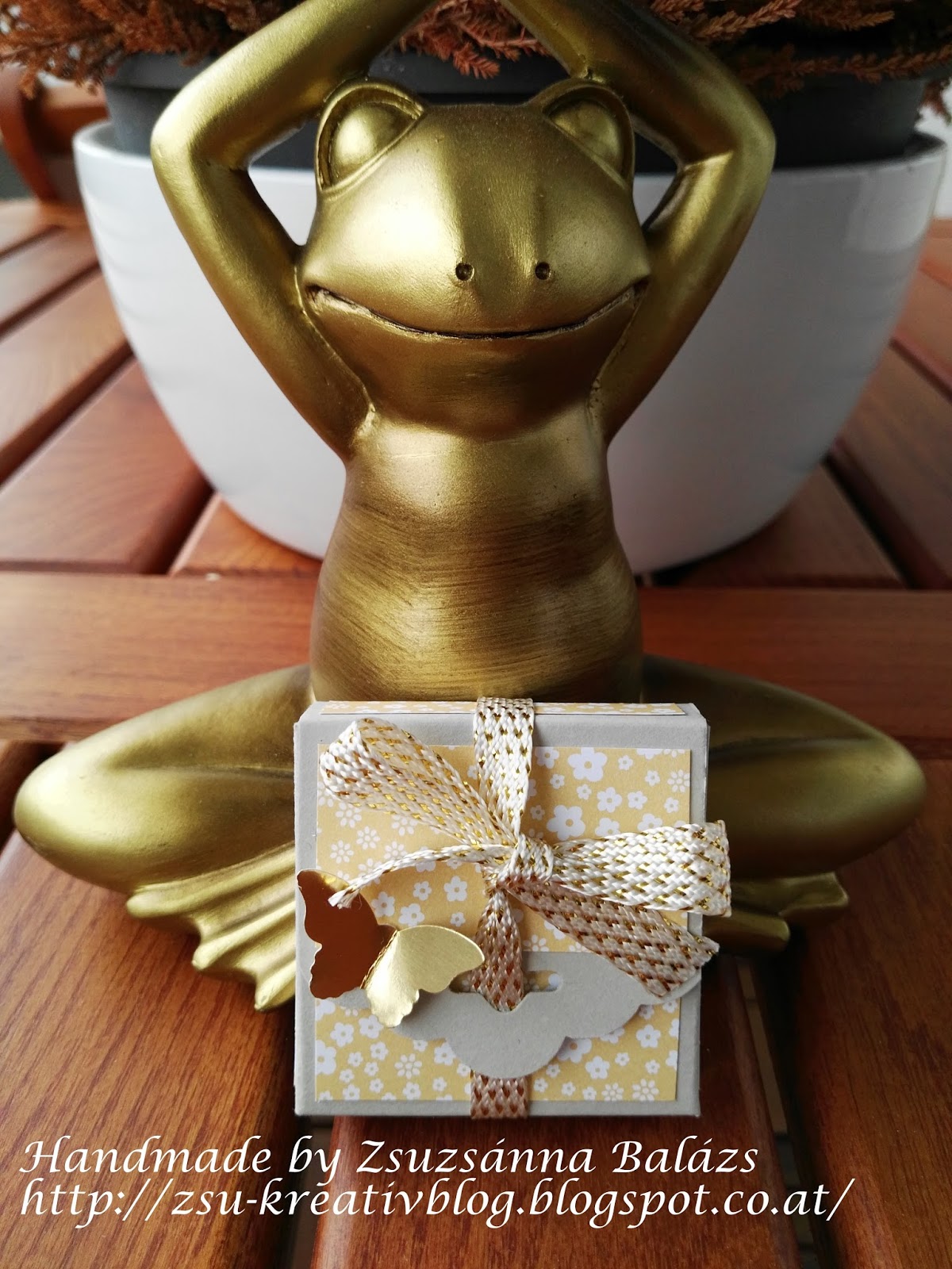 Ich habe für die Verpackungen einen Cardstock in Saharasand, Designpapier aus dem Designpapier im Block in den Farben Kirschblüte, Safrangelb und Wasabigrün genommen.