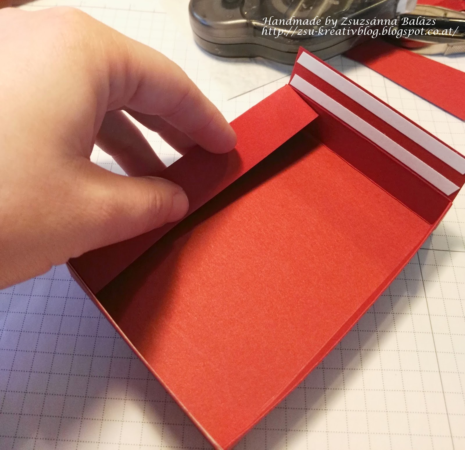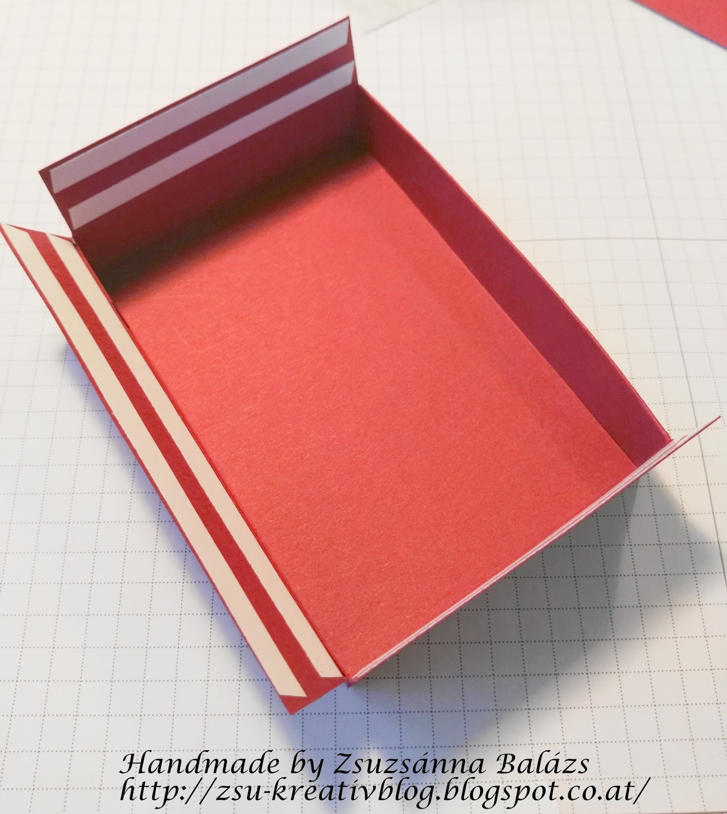 Jetzt biegt ihr die größeren Laschen um und klebt sie fest. Ich habe diese Variante genommen, weil die Schachtel meiner Meinung nach so fester und stabiler ist.