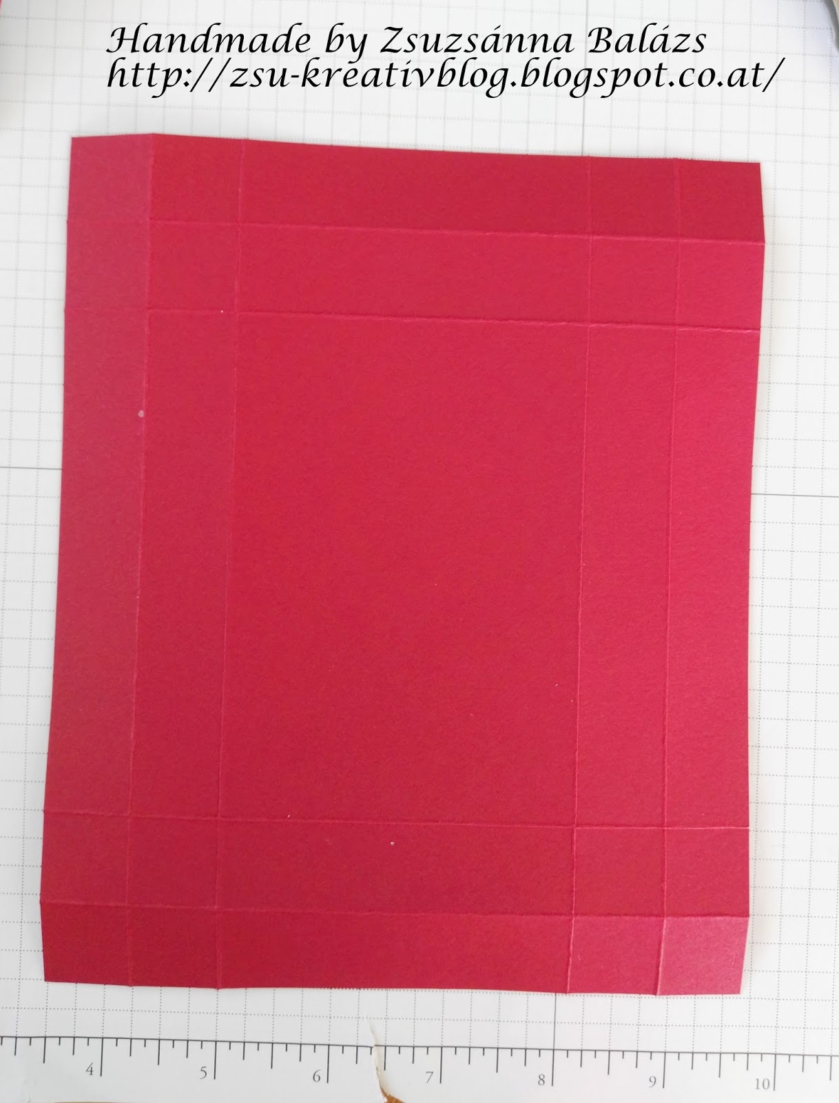 Für den Boden braucht ihr einen Cardstock in der Größe von 19 cm x 15,7 cm. Dieser wird dann auf allen Seiten bei 2 cm und bei 4 cm gefalzt